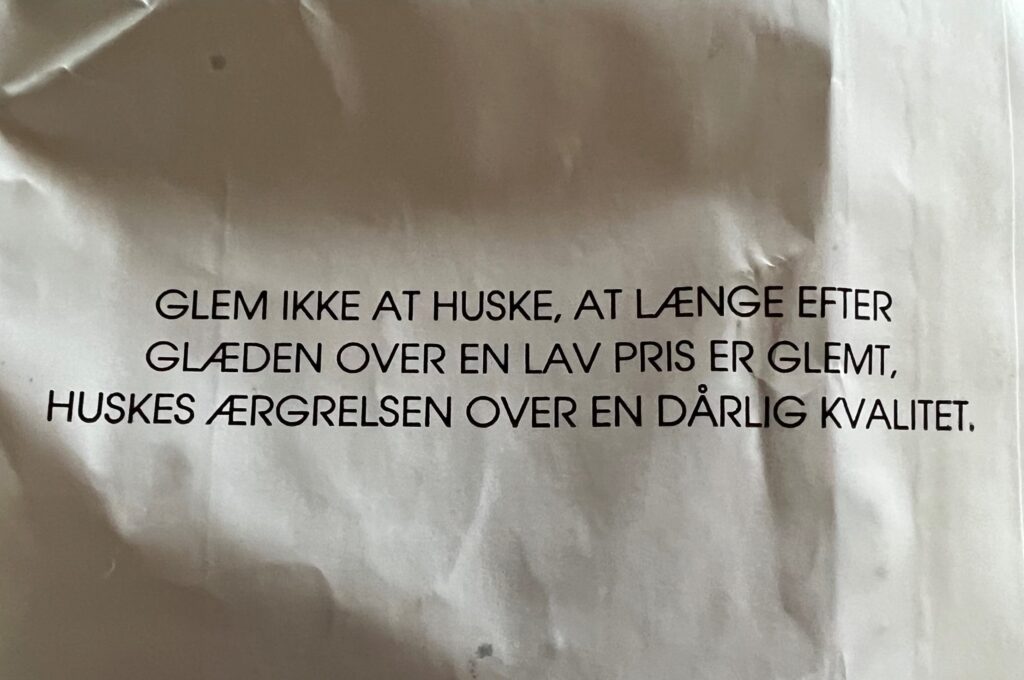 Hold da op, – det var godt nok mange penge du skal have for én dag. Hvorfor er det så dyrt? Jamen, ER det dyrt? Dyrt i forhold til hvad? Hvad koster det dig hvis jeg ikke kommer? Ja, – du siger du har 18 medarbejdere med en gennemsnitlig årsløn på 45,000, – det er 9.720.000 i ren lønudgift. Grunden til du gerne vil have jeg kommer forbi, går jeg ud fra skyldes at du forventer at noget kan blive bare lidt bedre. Hvis dine medarbejdere bliver bare én procent bedre af mit besøg betyder det 97.200 kr. i besparelse. Helt ærlig, hvis du ikke tror på at vi kan forbedre din bundlinje med 1 %, skal vi slet ikke ulejlige os, og de 20.000, – du skal give for at opnå den besparelse er vel egentlig rimelig nok. Vi kan også lave den aftale, at du i stedet for at betale, afregner ved at give os andel i besparelsen eller din fortjeneste. Længe efter glæden over den billige pris, – huskes ærgrelsen over den dårlige kvalitet. Vi må holde op med at isolere fokus udelukkende på pris, for hvad koster det, at man ikke opnår de ønskede synergier ved forandringer? – dårlig trivsel? – manglende strategisk fokus? – stor udskiftning af medarbejdere? – mangel på arbejdskraft? Du kender sikkert selv mange flere ting der trænger til at blive rettet op, – det koster altså også ikke at gøre noget. Hvorfor er det, at vi altid kan finde penge til afskrivninger ved tab, udgifter til opretning af fejl, manglende medarbejdere- når vi ikke kan finde penge til at forhindre netop disse fænomener? Husk, at man kan ikke ikke have en strategi. Ikke at have en strategi er også en strategi.